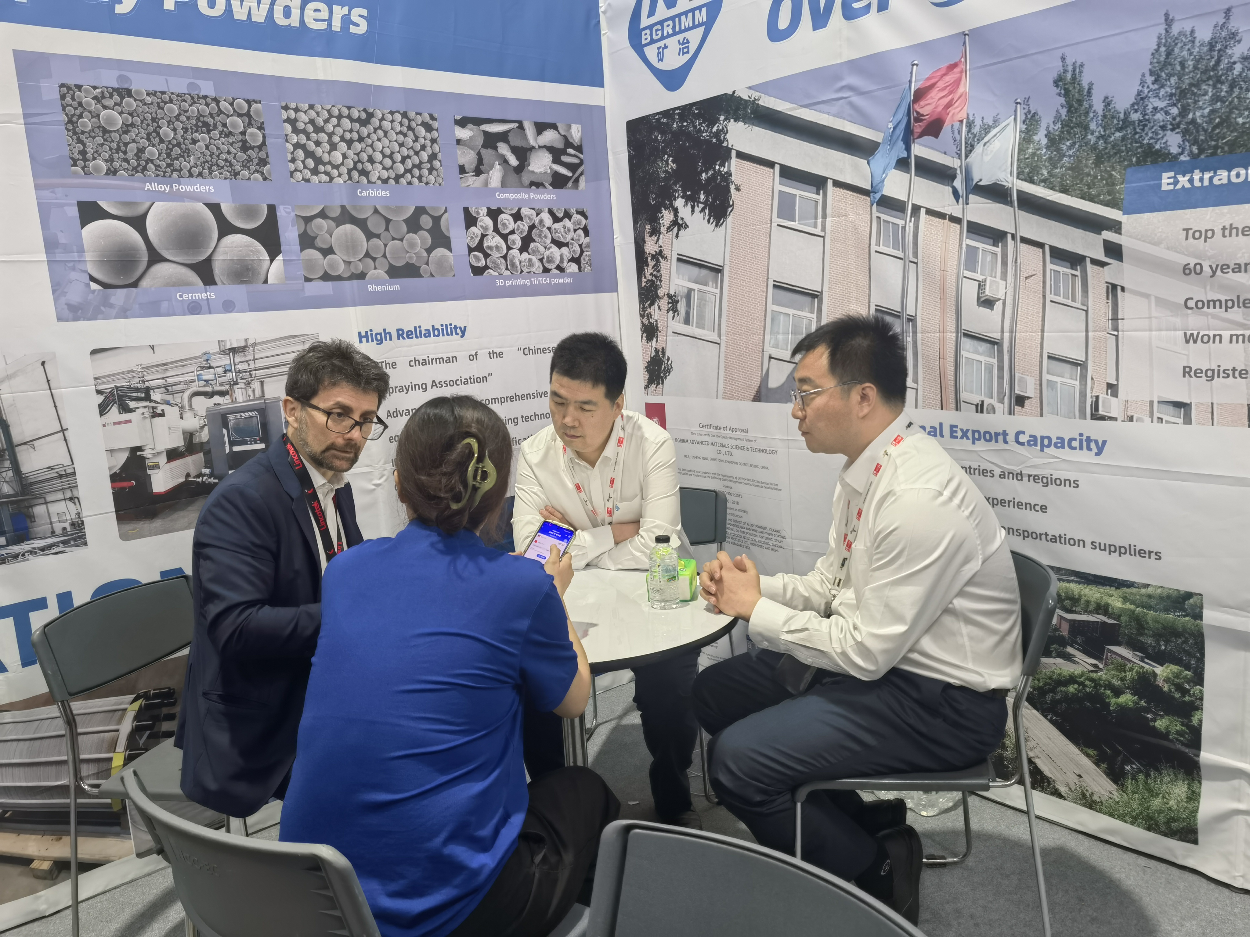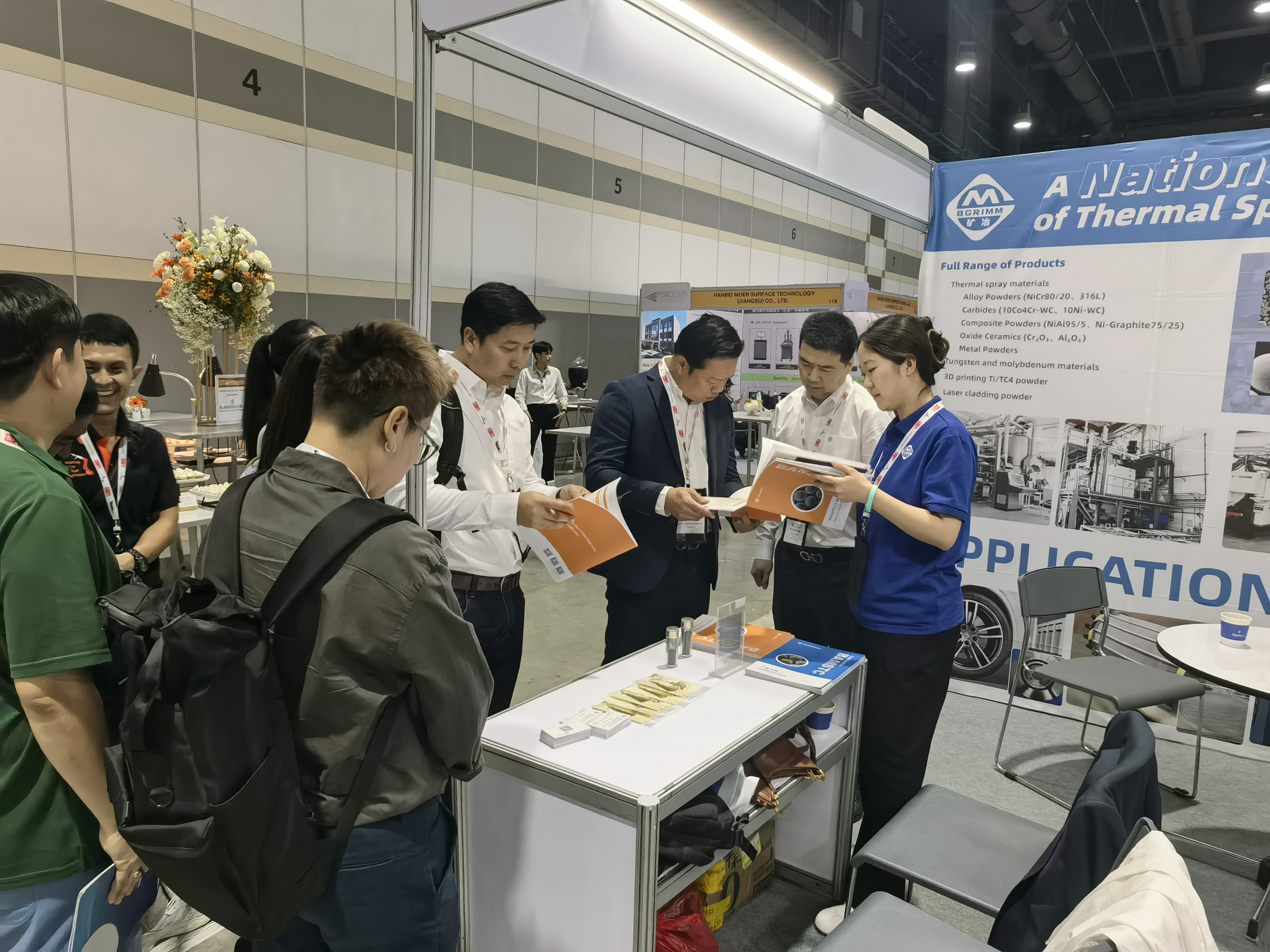 北矿新材展台吸引了来自美国、日本、印度、泰国、新加坡、澳大利亚、欧洲等国家和地区的行业客户、科研机构及合作伙伴驻足交流。公司市场部人员与全球同行探讨热喷涂技术前沿趋势,分享中国在热喷涂材料研发、工艺创新及产业化应用方面的成果,同时积极对接东南亚及全球市场需求,洽谈技术合作、产品代理与项目落地事宜。